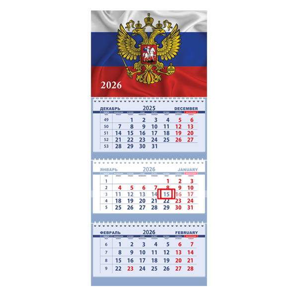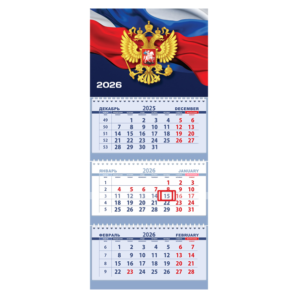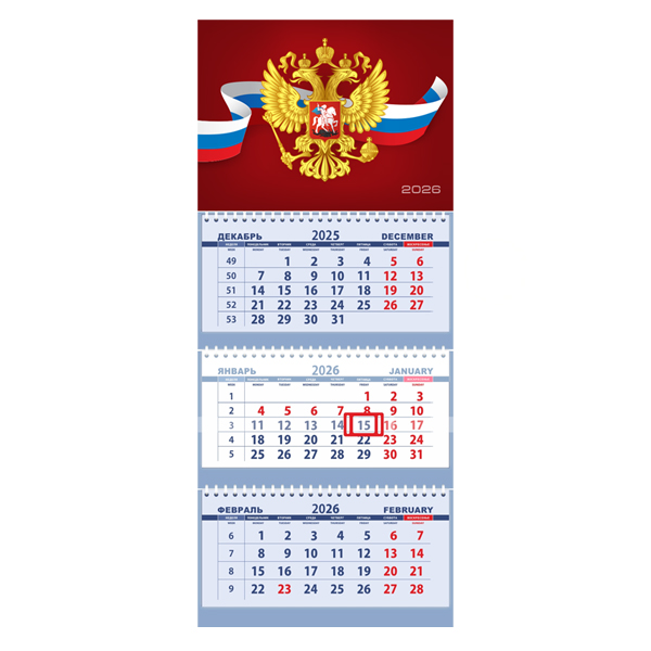 Календарь квартальный 3гр/3бл 295*700 2026 "Герб на красном фоне" ATTOMEX 2133505 [4657840310811] (457466)