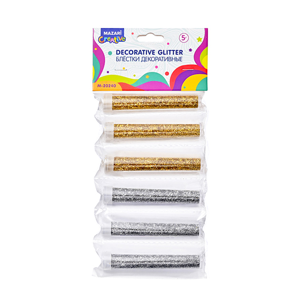 Блестки в наборе 02цв/06шт по 4.5г туба "Золото/серебро" е/п MAZARI М-20240 [4680527154316] (180889)