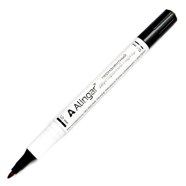 Маркер перманентный двусторонний круглый наконечник 0.5/1.0мм черный ALINGAR AL5537 [4680203083145] (298329)