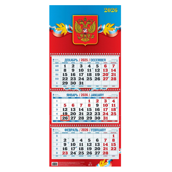 Календарь квартальный 3гр/3бл 310*680 2026 "Госсимволика"е/п АТБЕРГ КБ03-26 [4610150101159] (457418)