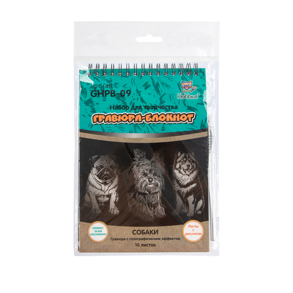 Набор ДТ Гравюра-блокнот А5 10л "Собаки" с рисунком е/п HOBBIUS GHPB-09 [4630082636116] (180909)