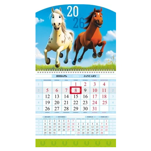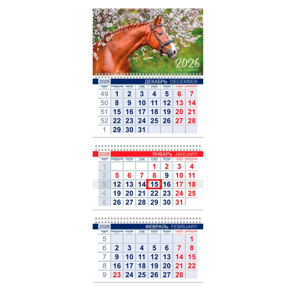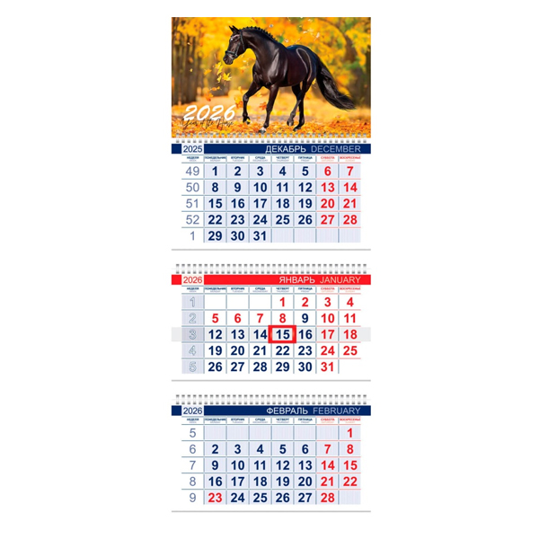 Календарь квартальный 3гр/3бл 297*750 2026 "Офис.Год Лошади" е/п HATBER 3Кв3гр3_34346 [4606782594452] (457609)