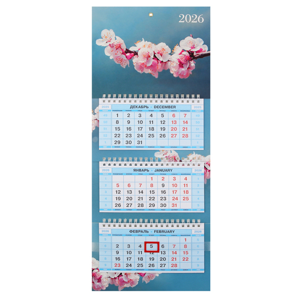Календарь квартальный 3гр/3бл 195*470 2026 "Мини-3.Цветущая сакура" HATBER 3Кв3гр5ц_33709 [4606782594773] (457610)