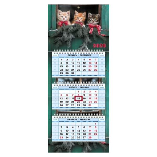 Календарь квартальный 3гр/3бл 195*470 2026 "Мини-3.Пушистая радость" HATBER 3Кв3гр5ц_34423 [4606782594810] (457611)