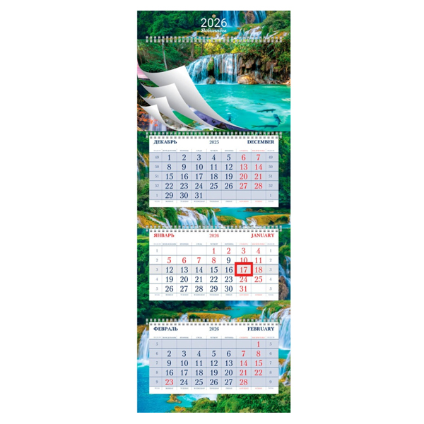 Календарь квартальный 4гр/3бл/5п 320*840 2026 "УльтраЛюкс.Водопады" HATBER 3Кв4гр2ц_34369 [4606782595015] (457613)