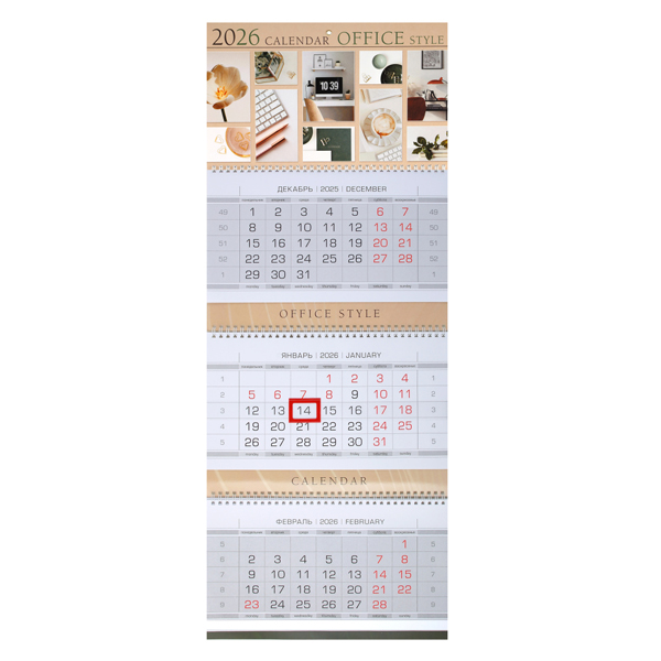 Календарь квартальный 3гр/3бл 297*758 2026 "Люкс.Office Style" HATBER 3Кв3гр2ц_34437 [4606782595183] (457617)