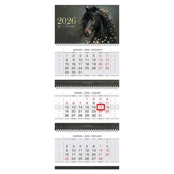 Календарь квартальный 3гр/3бл 297*758 2026 "Люкс.Год Лошади" HATBER 3Кв3гр2ц_34436 [4606782595190] (457618)