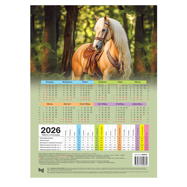 Календарь-табель А4 204*281 2026 "Природа" ассорти BG 386849 [4630567602889] (457630)